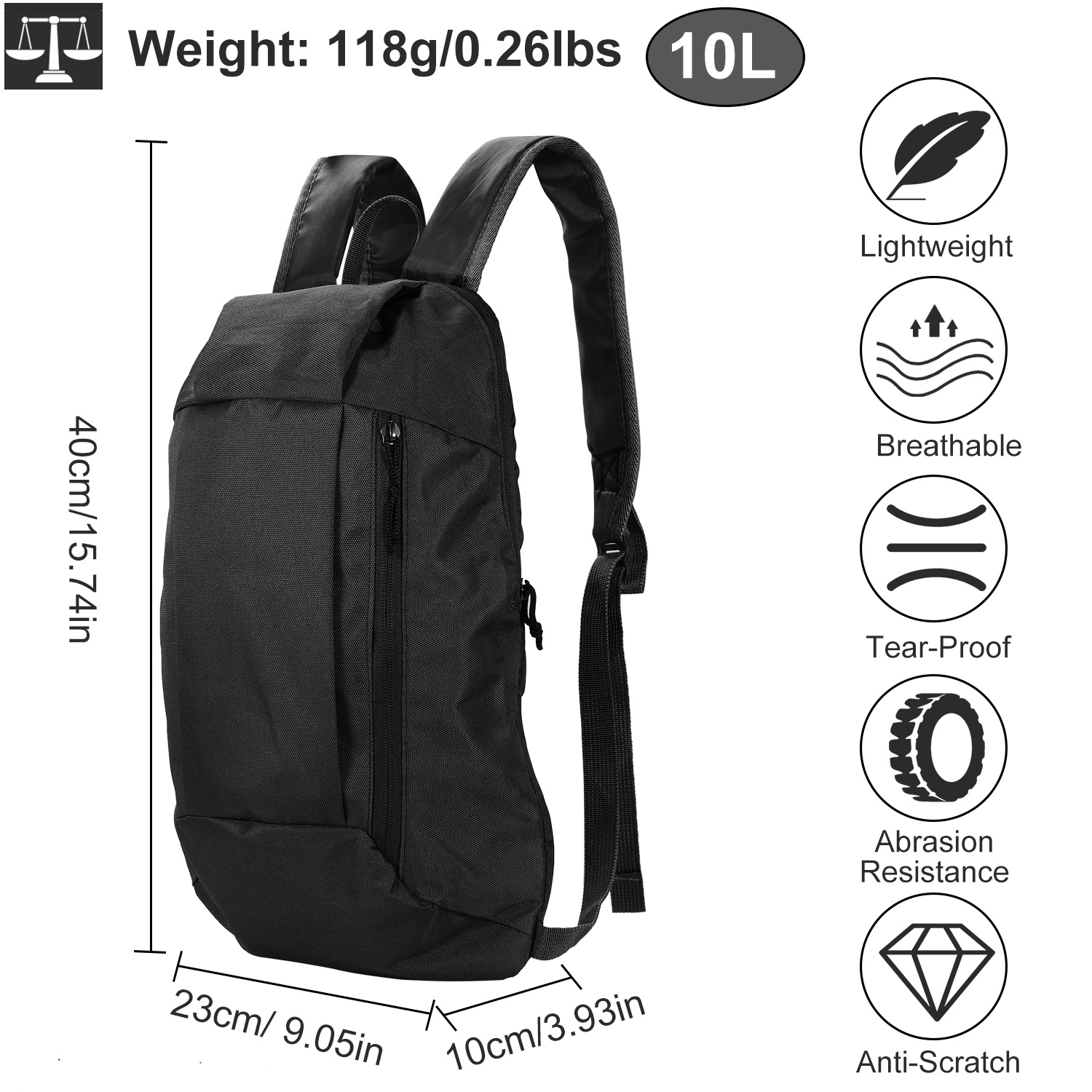 Made from premium oxford cloth materials, our outdoor sport backpack is sturdy, durable and can bear around 7.5kg/16.52lbs -weight objects. At the same time, it is light weight (Around 18g/0.26lbs) to almost not add any load to your back and has an adjustable capability of 10L to storage your personal belongings as much as possible when you are doing sports, traveling, going hiking, climbing, cycling and more. Additionally, built-in 0.5cm/0.2in-thickness air cushion and adopts ergonomically well-tailored design, the shoulder strap is breathable, moisture absorbing and load dispersion.